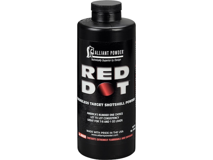 Improved Alliant Powder Red Dot now burns significantly cleaner and offers better flow characteristics with the same clay-crushing performance the world’s best shooters have trusted since 1932. Red Dot is optimized for 12-gauge target loads, offers Alliant Powder’s legendary lot-to-lot consistency.