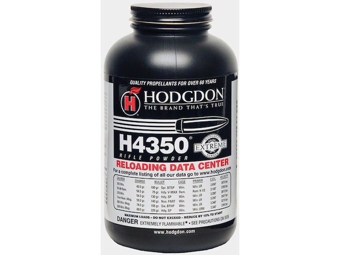 Hodgdon H4350 Extreme Extruded propellant is a burning speed that has been known to shooters for decades. During that time, Hodgdon has modernized H4350 by shortening the grains for improved metering and making it insensitive to hot/cold temperatures. H4350 is ideal in the WSM family of calibers (270, 7mm, 30, 325). H4350 is the standard in such cartridges as the 243 Winchester, 6mm Remington, 270 Winchester, 338 Winchester Magnum and many more. For magnums with light to moderate weight bullets, it can’t be beat!