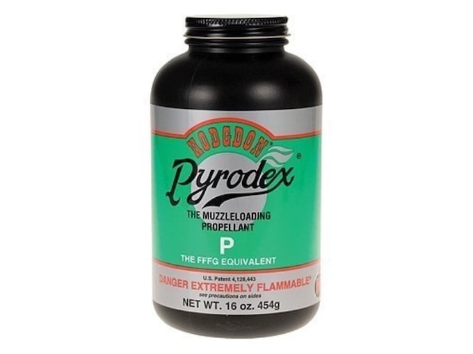 Hodgdon Pyrodex P is intended to be a direct replacement for FFFg Black powder when measured volumetrically using a black powder measure. The principal uses for Pyrodex P are in muzzleloading pistols, cap and ball revolvers, and in small bore, muzzleloading rifles. Like all grades of Pyrodex, it burns cleaner and produces less fouling than blackpowder.
