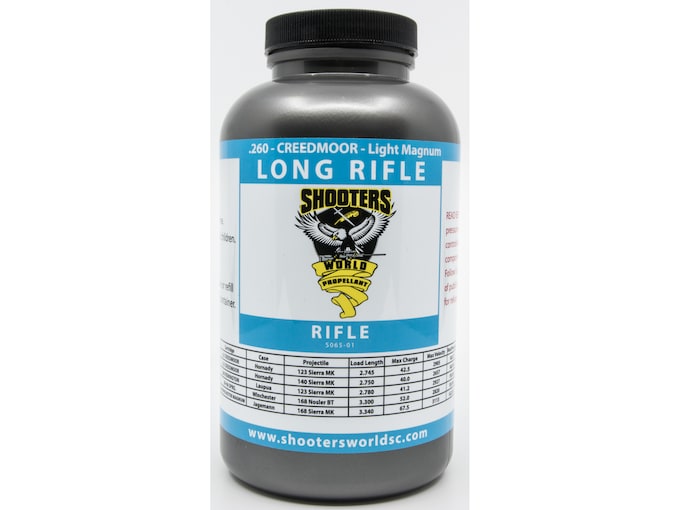 Long Rifle is optimized for the 6.5 Creedmoor. Whether with lightweight, moderate or heavy bullets loaded in this cartridge, Long Rifle yields high loading densities and optimized velocities. If you seek accuracy, one of the keys is to find a propellant that can “fill the case and seek maximum velocity”. Despite Long Rifle being an extruded propellant, it provides good flow characteristics through a volumetric powder dump. The grain is narrow, and cut short. While some reloaders insist on weighing each powder charge, that extra time is generally not necessary when loading for accuracy with this propellant.Due to its cleanliness of burn and incorporated flash suppressant, there is virtually no muzzle flash with Long Rifle. Long Rifle is a canister form of Explosia bulk and Lovex canister propellant S065.Warning About Smokeless Powder: Do not exceed the loads displayed in the reloaders guideNever mix any two powders regardless of type, brand, or source Never substitute any smokeless powder for Black Powder or any Black Powder substitute